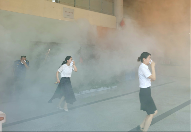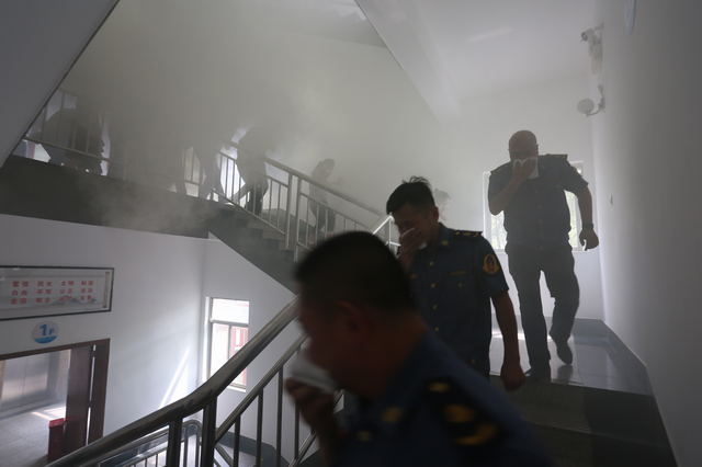 上午10时许,株洲市交通运输局办公大楼突然浓烟滚滚,随即警报声急促响起,一辆消防车在工作人员的引导下快速进入灭火战位,在浓浓烟雾中机关工作人员手捂湿毛巾向室外安全地带有序撤离。在完成人员疏散撤离后,市消防支队天元大队对灭火器的使用进行了现场讲解,向幼儿园小朋友展示讲解了消防专用车辆,并组织进行了灭火器使用的实际操作训练。