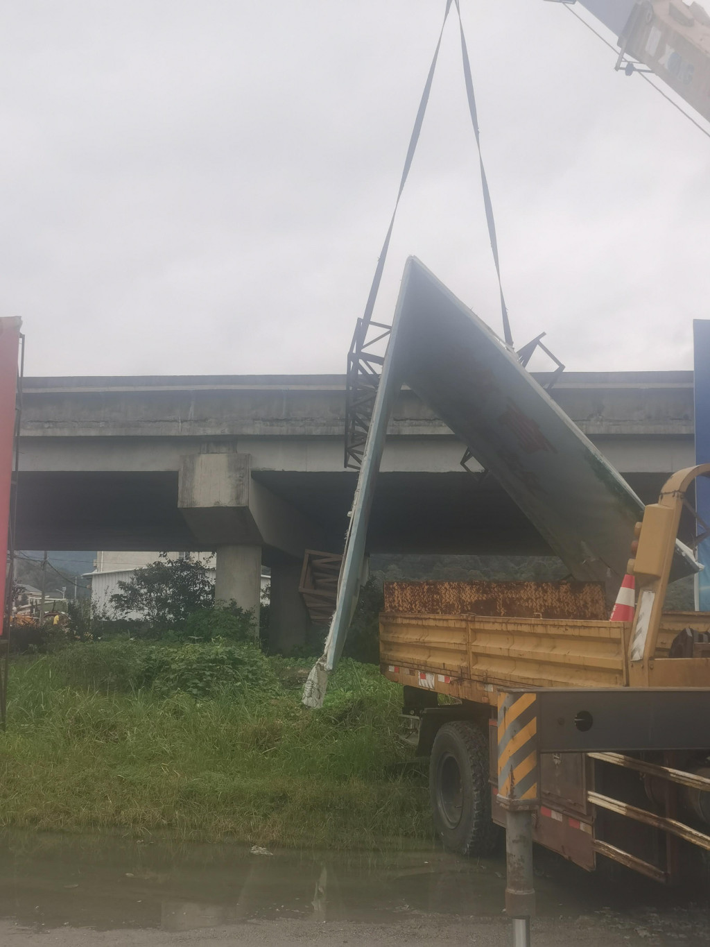 只见,3台小轿车、1台皮卡、1台货运车,1台随车吊台,依次摆放。一行18人,有的维持秩序,有的指挥操作,有的清理现场,有的回应周边村民咨询,虽然忙碌,但分工明确,相互协作,井然有序。拆除工作采取吊车空中固定牌面,氧焊分片切割,对路面做好安全防护的同时,迅速清理现场垃圾,尽可能减少对通行车辆的影响。