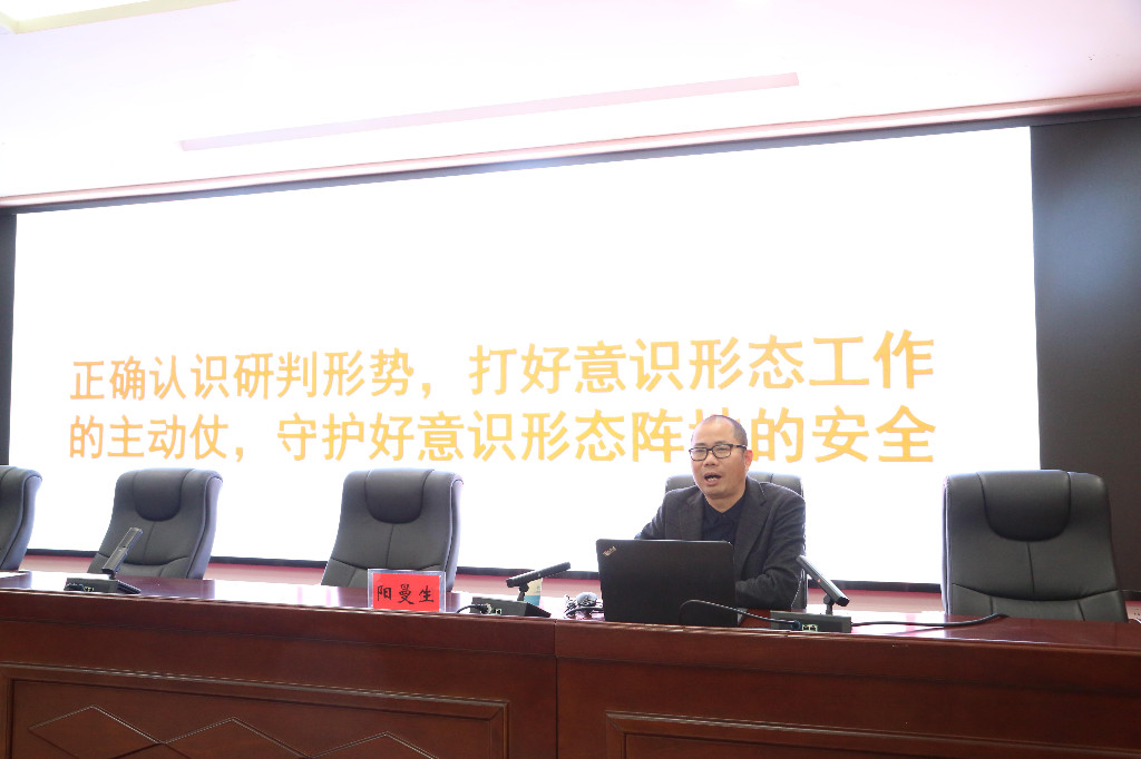 随后,株洲市交通运输局“开年第一课”集中学习开始,集中学习邀请市委党的二十大精神宣讲团成员、市委宣传部副部长阳曼生作意识形态专题辅导授课,阳曼生以《正确认识研判形势,打好意识形态工作的主动仗,守护好意识形态阵地的安全》为题,运用生动的语言、典型的案例为全体干部职工进行详细的阐述和分析,进一步激发了党员干部干事创业的信心和决心,提升了做好意识形态工作的责任感和紧迫感。(夏四亮)