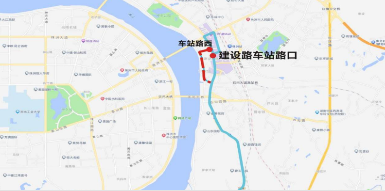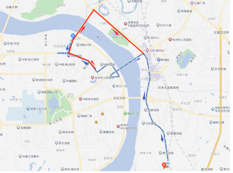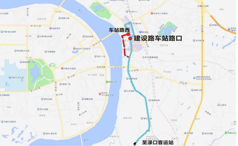 下行:建设路车站路口—天元桥东—渌口火车站—渌水二桥南—南洲产业园
