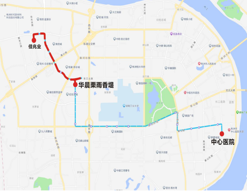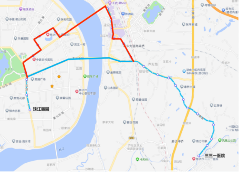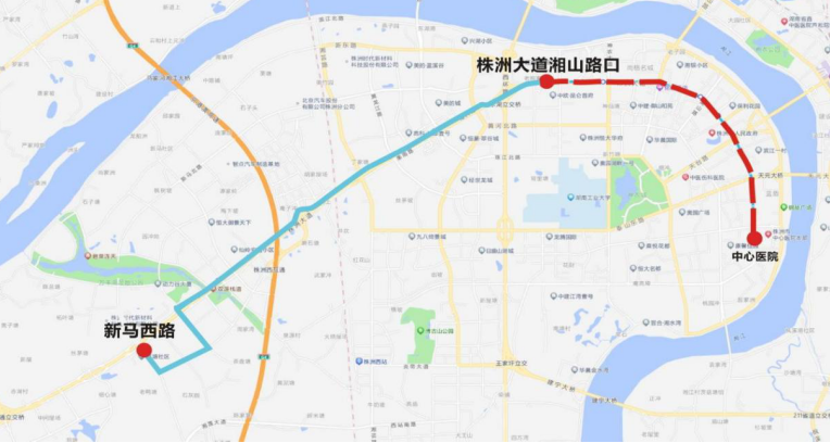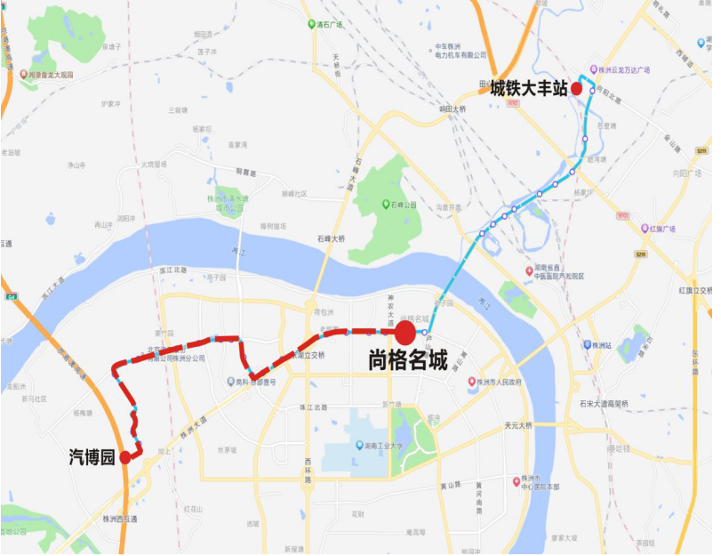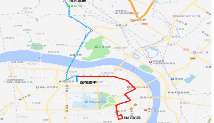 下行:汇通金港—枫溪大道—建设路—株洲大桥—韶山路—长江北路—芦淞桥西