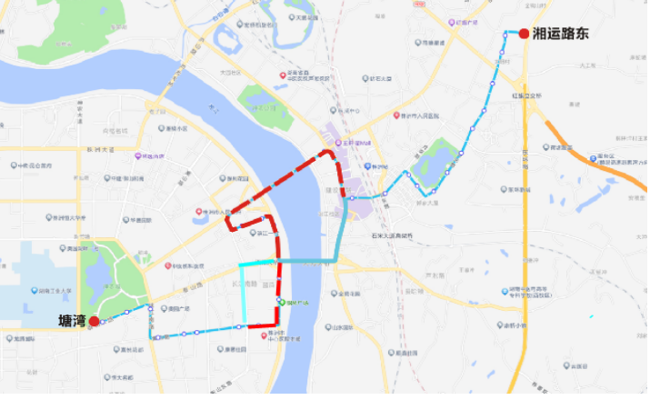 下行减少站点:塘湾、湖南工大东门