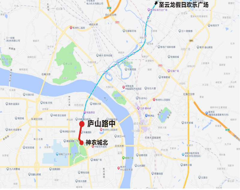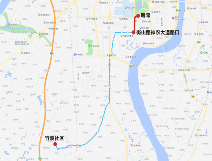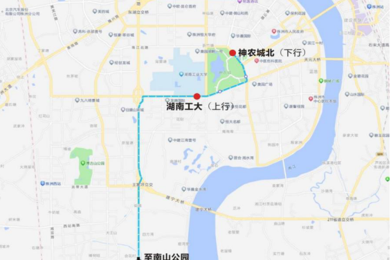 下行:南山公园—机动车驾考中心—城发·南洲壹号—渌口大桥东—神农城—神农城北
