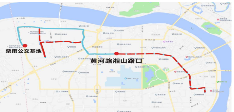 上行:万丰湖滨江路口—中国动力谷展示中心—仙月环路新马路口—栗雨公交基地—泰山路西环桥下—湖南工大正门