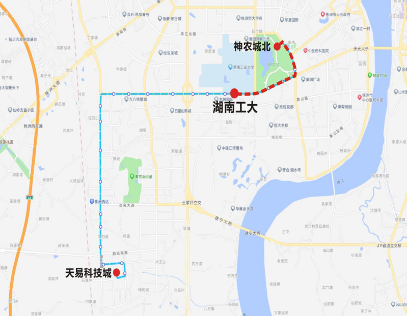 下行:神农城北—神农城—湖南工大—泰山路—湘芸路—天易科技城