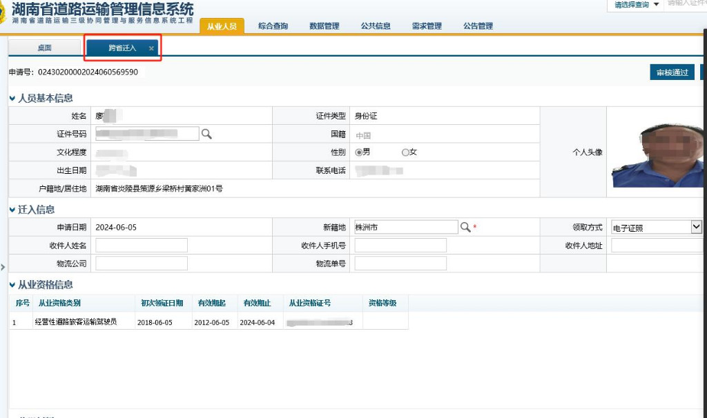 为进一步便企利民,提高政务服务效率,按照国省关于优化道路运输从业资格管理工作的要求,株洲交通运输局积极推动实施道路运输从业资格证跨省转籍。从2024年6月5日起,申请道路运输从业资格证转籍,无需再办理纸质档案移交手续,无需到转出地和转入地发证机关现场提出申请,从业人员通过“道路运政一网通办”小程序即可线上申请办理,全部审批在线上完成并自动生成电子证照。