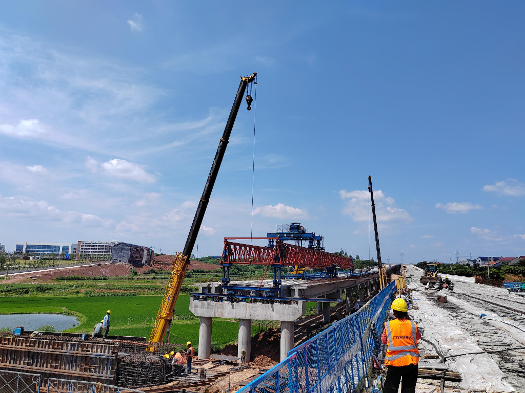 通用的架桥机一般在8.5至8.9米高,但孟塘特大桥桥面与吉衡铁路桥下的净高只有8米,为了顺利完成施工任务,孟塘特大桥的架桥机都是量身订制。