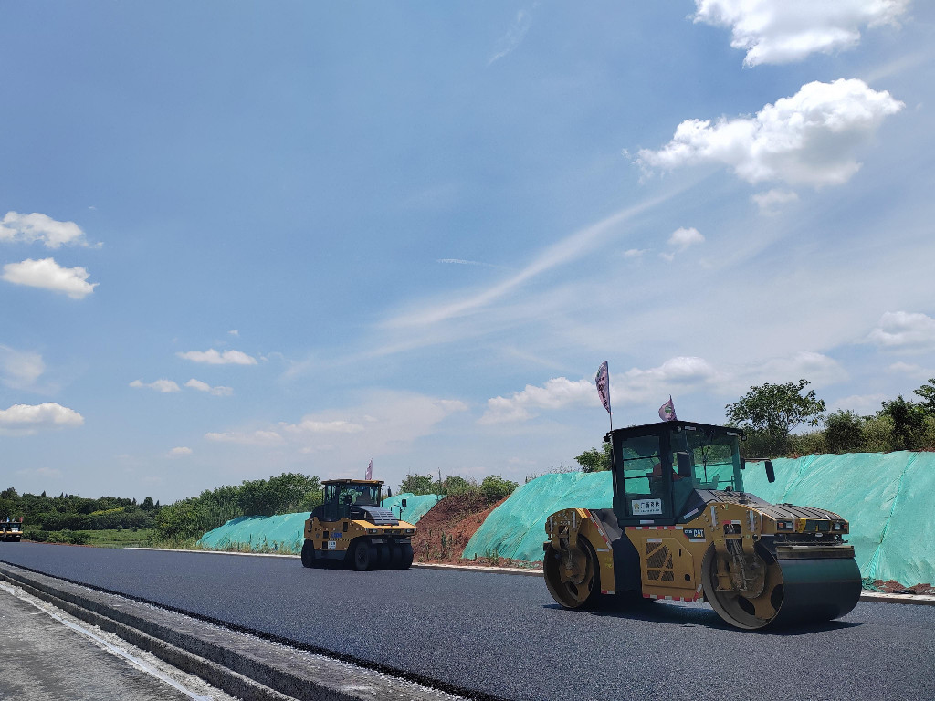 除此之外,茶常高速的路面沥青混凝土铺设也已经全面展开。