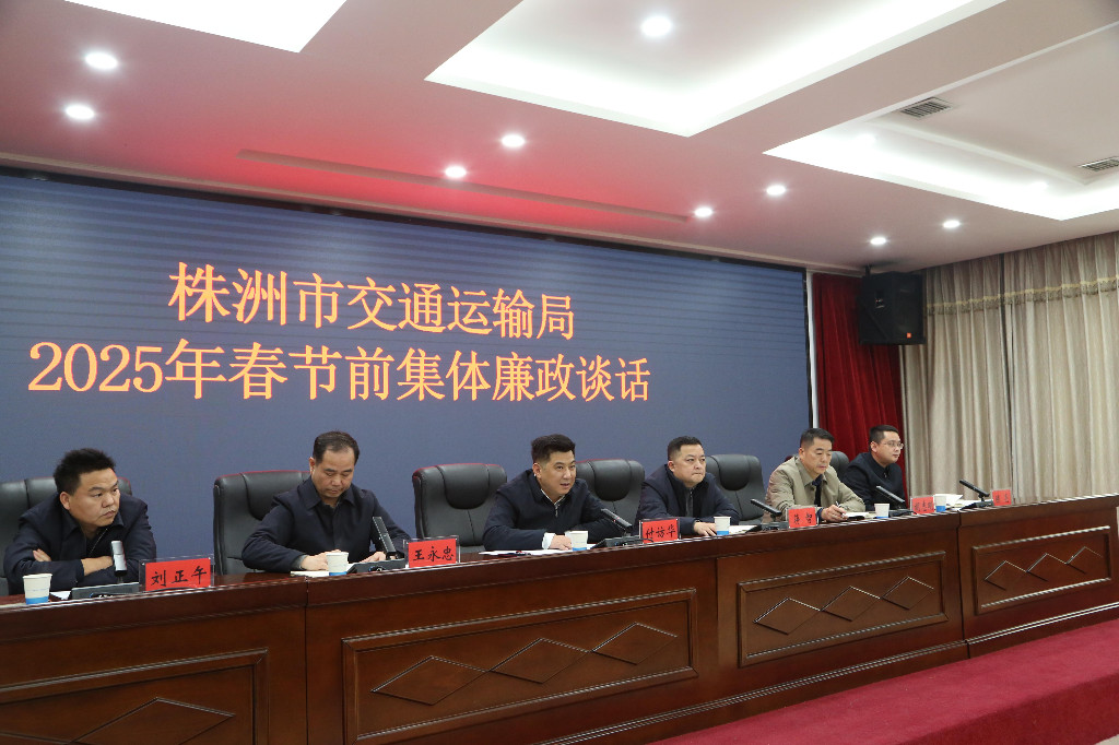 1月26日,株洲市交通运输局党组书记、局长付访华主持召开专题会议传达学习十三届市纪委五次全会精神、市政府第四次全体(扩大)会议精神并开展春节前集体廉政谈话。局领导班子成员、全体机关干部、局属单位班子成员,执法支队各大队书记、队长参加会议。