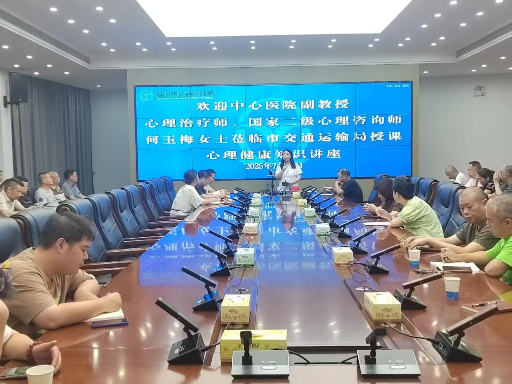 根据上级关于加强夏秋季爱国卫生运动和大力开展健康科普活动、传播心理健康知识的安排部署,切实维护全局系统干部职工心理健康,7月25日,株洲市交通运输局邀请了株洲市中心医院副教授、心理治疗师、国家二级心理咨询师何玉梅到我局讲授“压力管理”相关知识,帮助全体干部职工科学应对压力,提升心理健康水平。