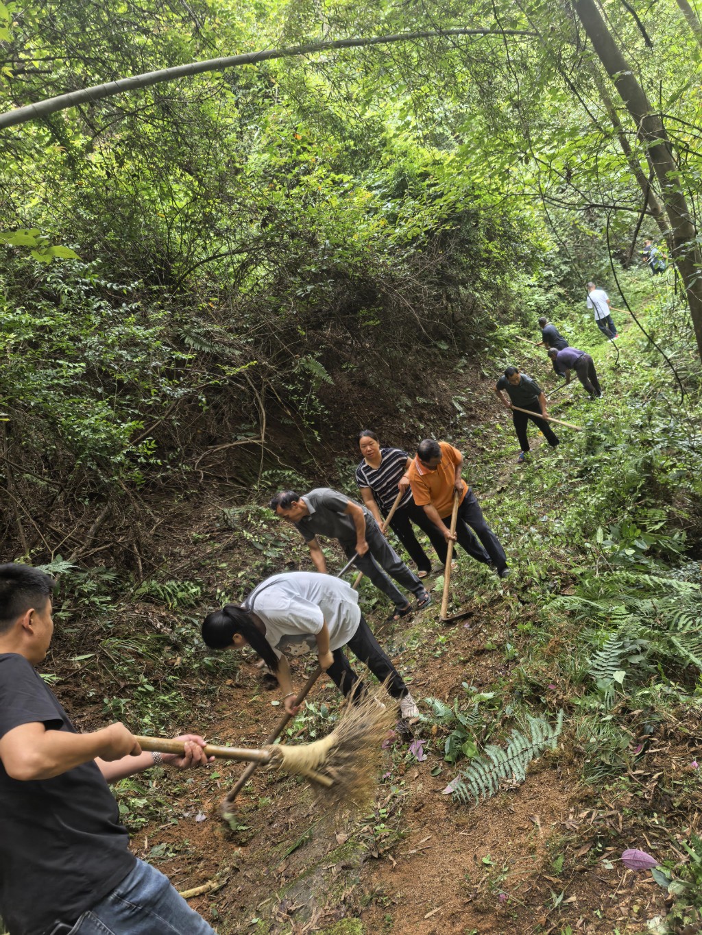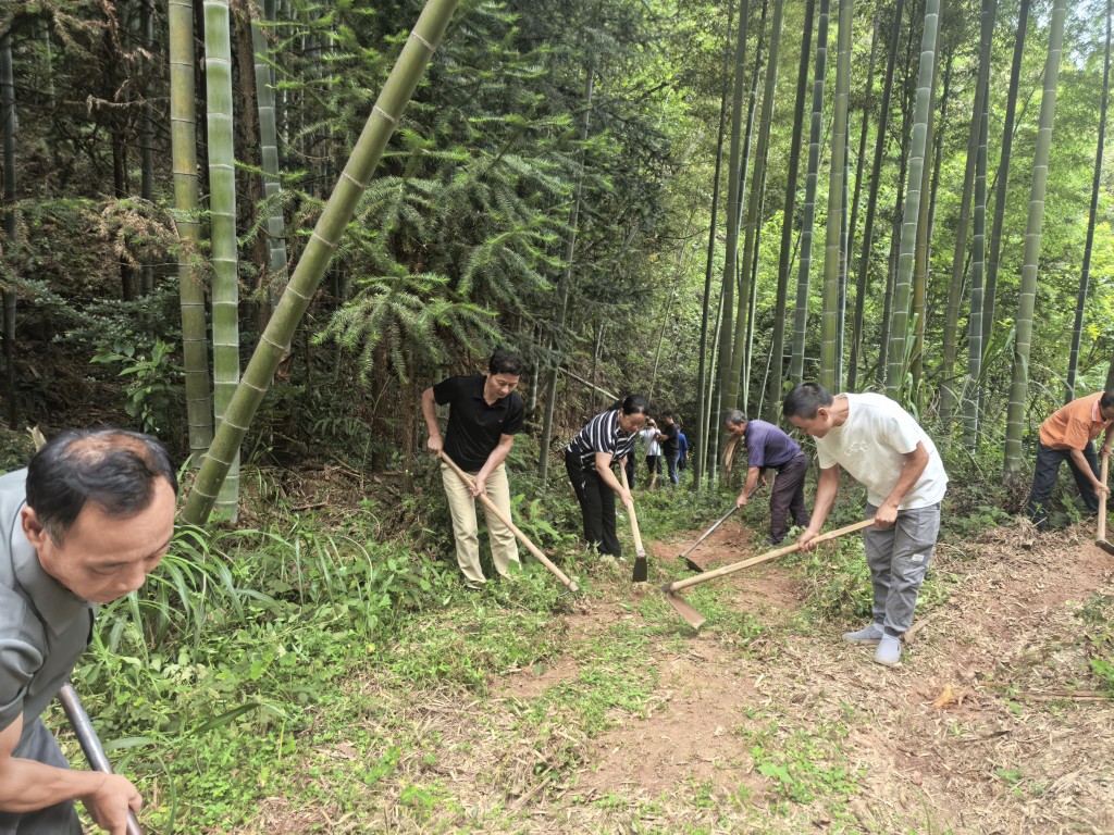 8月14日清晨,炎陵县垄溪乡南岸村的山间弥漫着草木清香,株洲市交通运输局驻村工作队与村支两委带领党员和各组组长,踏着晨露来到“永安路”,开启了八月主题党日活动。每年此时,这条山间水泥台阶小路都会迎来特殊的 “体检”—— 清理杂草、疏通淤泥,十年如一日的养护,让这条不起眼的小路始终保持着畅通。