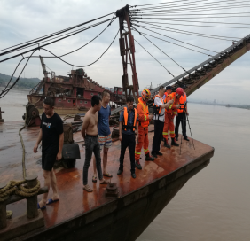 7月8日,汛情严峻。海事局仅有一艘拖轮,在处置大型船舶失控走锚方面力量薄弱,且此时湘江水位过高,仅有的一艘拖轮也无法通过船闸到达航电枢纽上游。而空洲岛辖区停有大量砂石船舶,且有一座航电枢纽横亘湘江,一旦发生船舶撞击闸坝,将造成重大经济损失和社会影响。当日晚,市交通运输局、海事局分别召集12艘社会船舶船主参加紧急调度会,要求他们连夜将船舶停泊于海事局在空洲岛设置的三道应急救援关口附近水域,并随时听候指令。