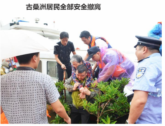在各部门协调合作下,古桑洲共撤离248位居民,整个过程迅速有序,无人员伤亡。此时古桑洲供人员撤离的码头已经完全被洪水淹没。