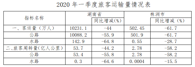 一季度,完成全社会营业性客运量502.45万人,同比下降61.7%,其中公路完成501.9万人,同比下降61.7%,水路完成0.55万人,同比下降28.7%。完成营业性旅客周转量2.78亿人公里,同比下降58.2%。其中公路完成2.78亿人公里,同比下降58.2%,水路完成3.82万人公里,同比下降15.5%。