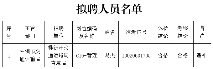 株洲市交通运输局2018年公开招聘工作人员拟聘人员公示