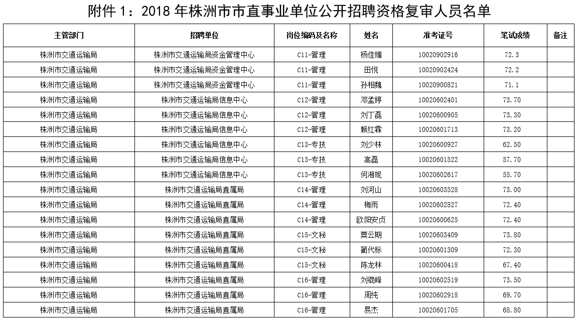2018年株洲市交通运输局公开招聘资格复审的公告