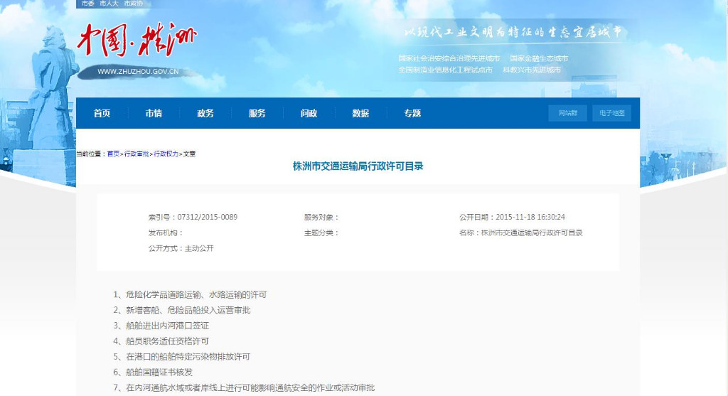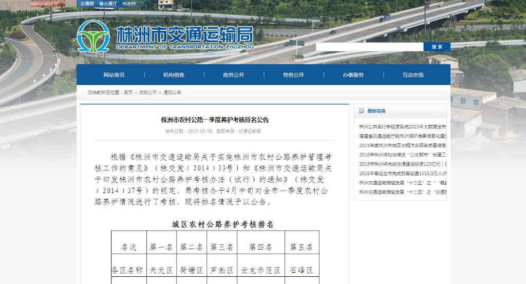 株洲市交通运输局 2015年政府信息公开工作年度报告