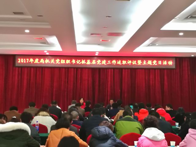 为深入贯彻落实党的十九大精神和习近平总书记关于落实党建工作责任制、党组织书记履行好党建工作第一责任人的职责等重要精神,进一步推动全面从严治党向基层延伸,近日,局机关党委组织召开2017年度基层党组织书记抓基层党建工作集中述职评议会议暨主题党日活动。