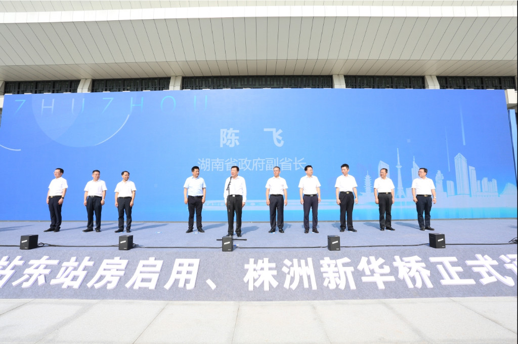 今天上午,株洲火车站东站房启用,新华桥正式通车。副省长陈飞宣布株洲火车站东站房启用、新华桥通车。市委书记曹慧泉出席并致辞,市委副书记、市长陈恢清主持仪式。